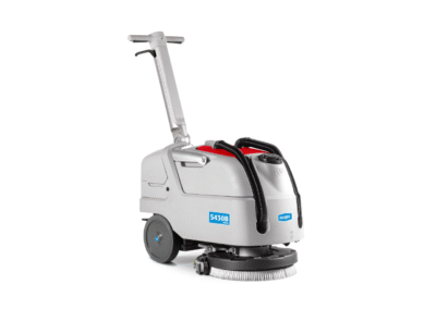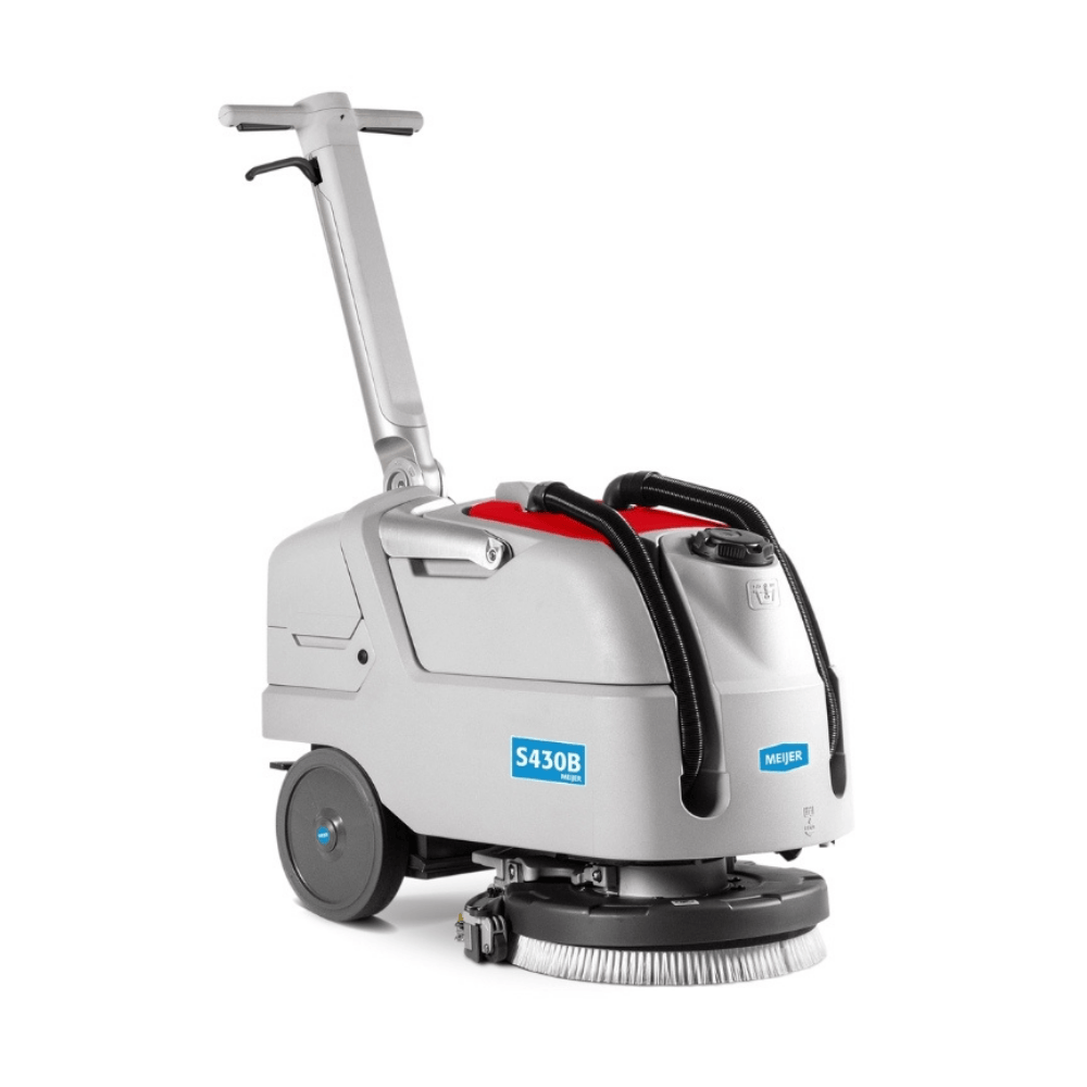De S430B combineert kracht en eenvoud. Met 25 liter schoon- en 27 liter vuilwatertanks, een borstelÂdruk van 40 kg en een werktijd tot 3 uur levert hij een schoon, streeploos resultaat. Dankzij de parabolische dweilmond is de vloer direct droog en veilig beloopbaar.