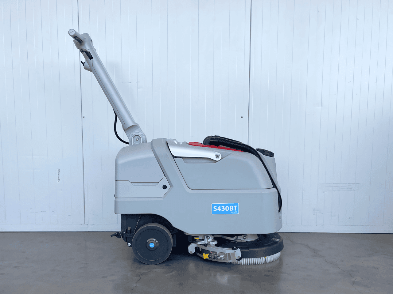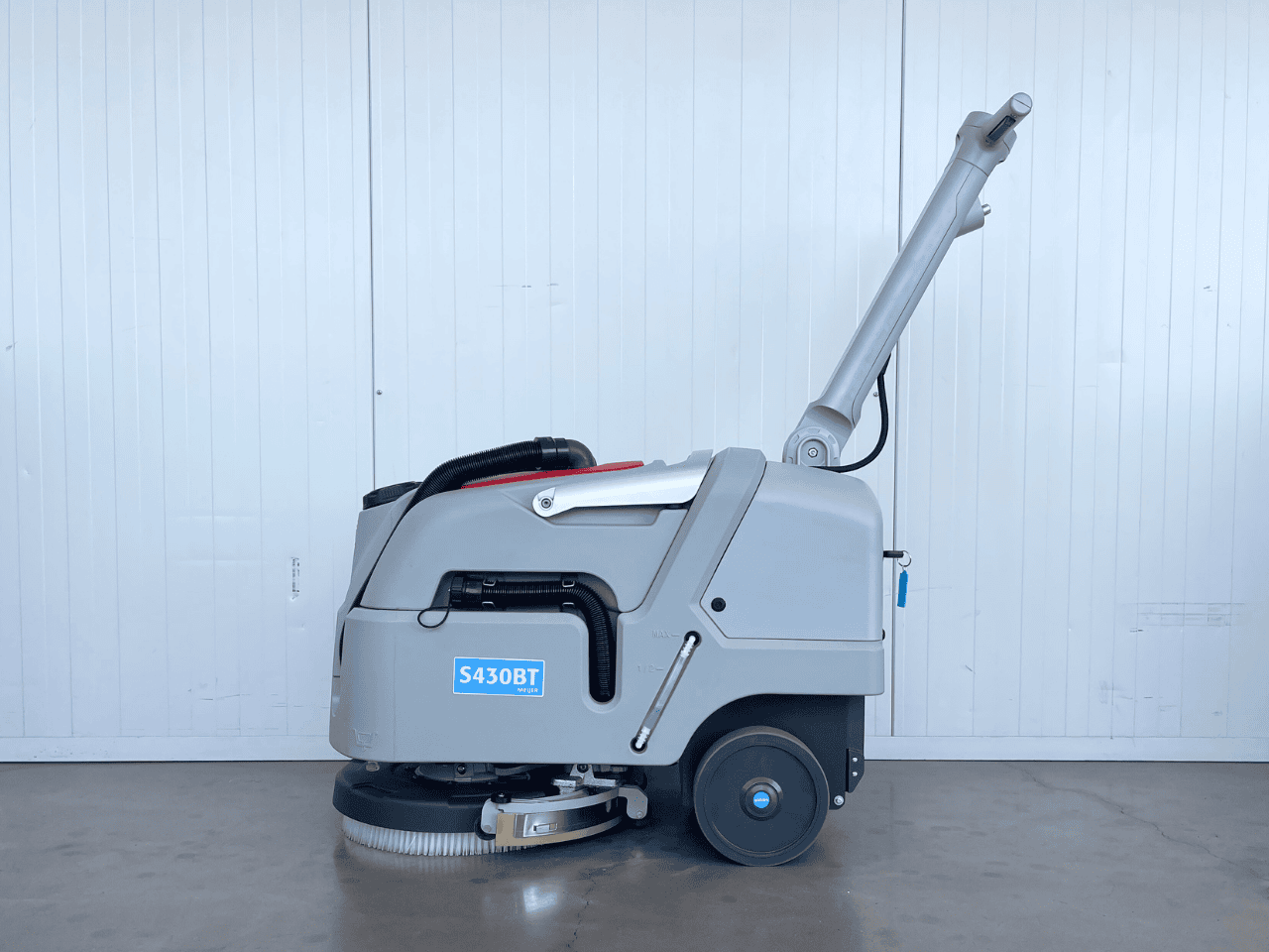 De S430BT combineert tractie op de wielen met 40 kg borsteldruk en een 43 cm schrobdek. De gebogen, meedraaiende dweilmond laat vloeren direct droog achter, zodat medewerkers veilig door kunnen. Dankzij de 25/27 L tanks en ~3 uur werktijd maak je meters zonder onnodige stops — ideaal voor wie simpelweg klaar wil zijn.