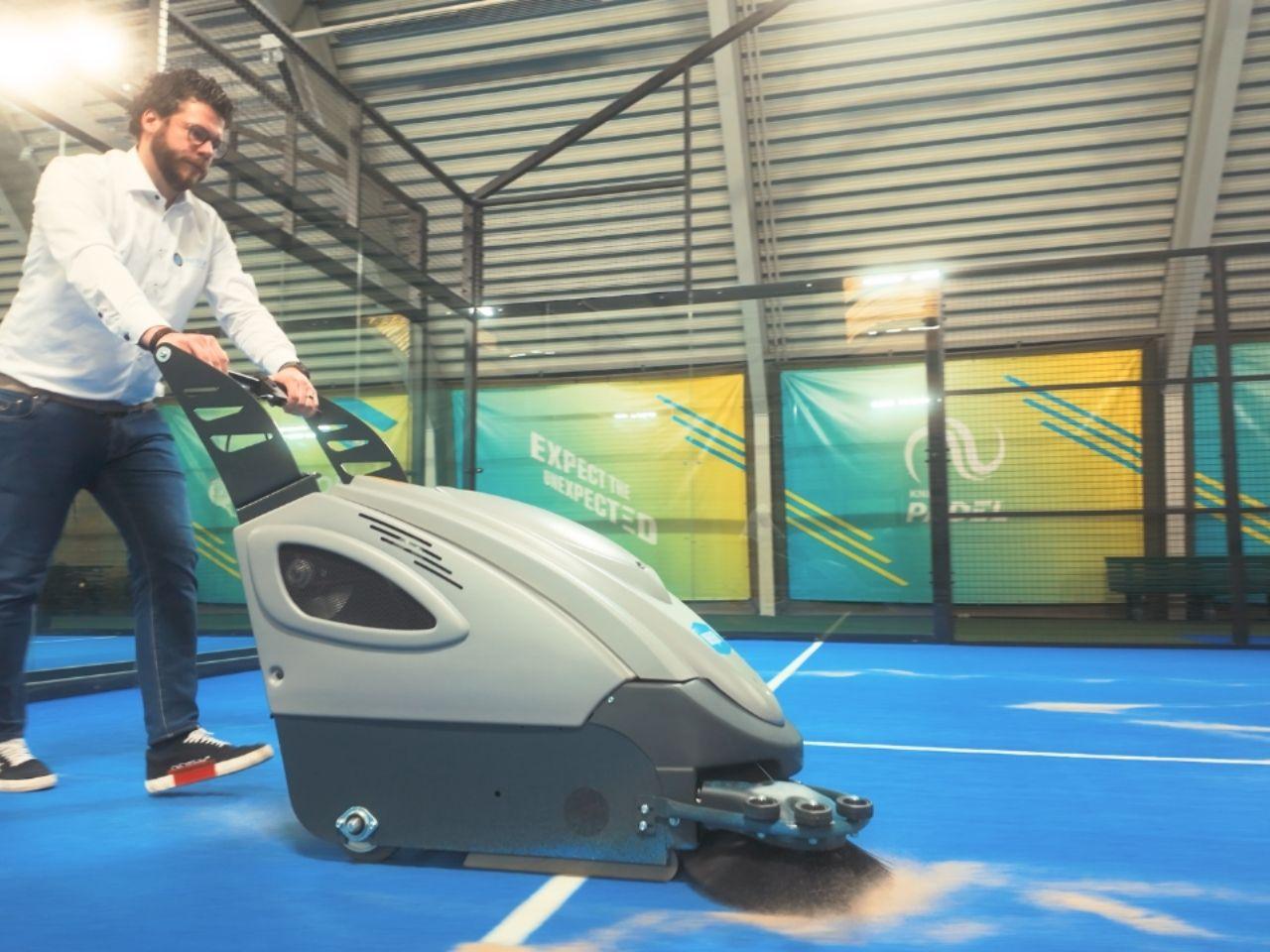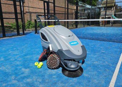 De VP70 is ontwikkeld voor padelclubs- en verenigingen. Dankzij zijn scherpe wendbaarheid, elektrische filtratie en een veegbreedte van 68 cm verwijdert hij stof, blad, balpluis en losliggend vuil zonder de baan te beschadigen. Met 1,5 uur werktijd op accu veeg je tot 6 complete padelbanen in één ronde. Ideaal voor clubs en beheerders die geen tijd willen verliezen aan onderhoud dat handmatig veel te lang duurt.