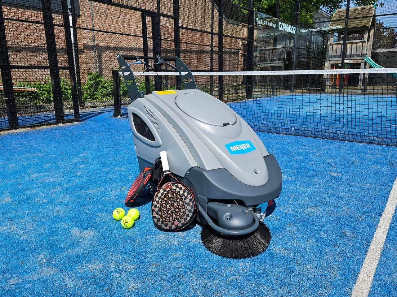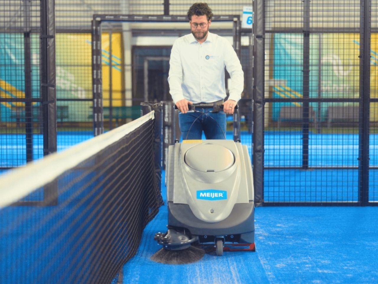 De Meijer VP70 is een compacte en krachtige achterloop veegmachine die elke padelbaan en omliggende ruimte moeiteloos brandschoon maakt. Praktisch, betrouwbaar en gebouwd om te presteren — precies wat je verwacht van Meijer.