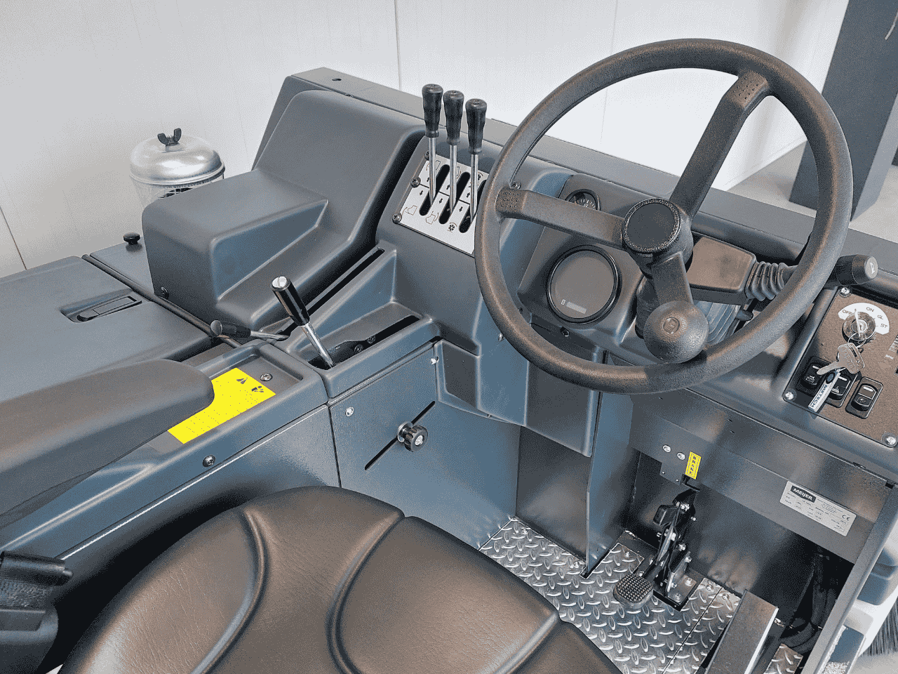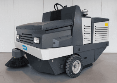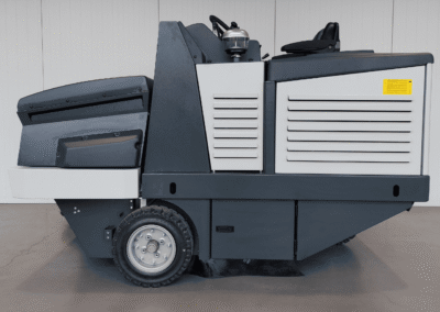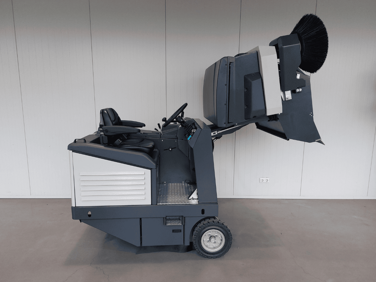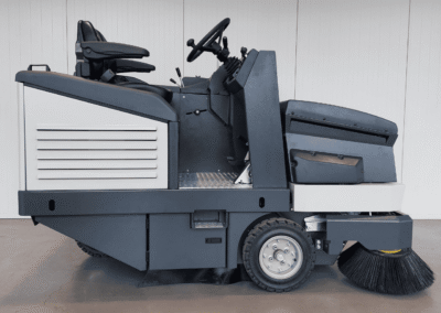 De brede hoofdborstel van 100 cm, uitbreidbaar tot 160 cm met twee zijborstels, maakt de machine ideaal voor logistieke terreinen, parkeerplaatsen, asfalt, beton en bestrating. Dankzij de sterke dieselmotor en rijsnelheid tot 12 km/u werkt hij moeiteloos lange diensten achter elkaar.
